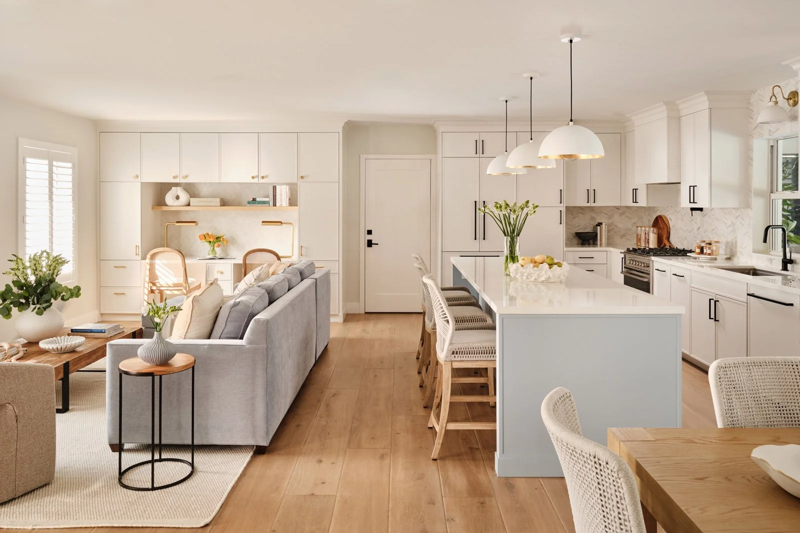 A full-scale renovation of a 1,400-square-foot Palmetto Bay residence, thoughtfully reimagined within its existing footprint. Strategic space planning removed the former entry sequence and redefined circulation, allowing the kitchen to anchor a seamless open-concept layout that connects living and dining areas with ease.